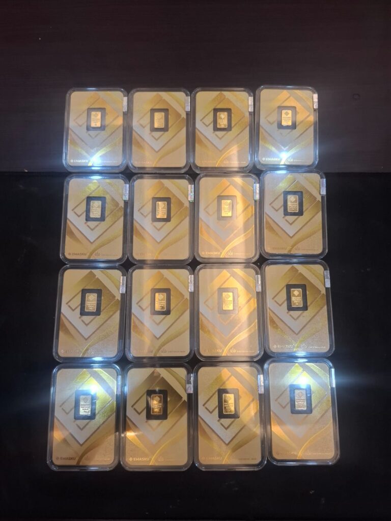 16 keping emas masing-masing seberat 1 gram.